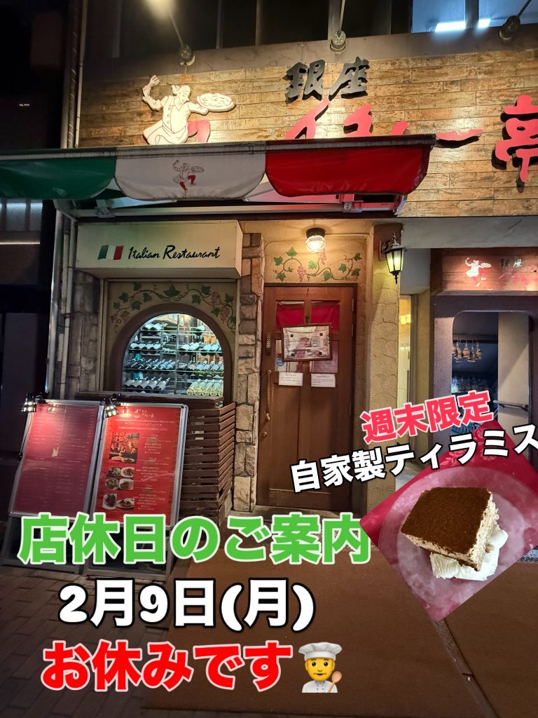 お知らせ 2026-02-09 店休日のご案内👨🍳 投稿ナビゲーション お知らせ イベント フェア・限定セット 料理 スタッフ募集 賞味会 年間スケジュール リポート 銀座イタリー亭寄席 ホールスタッフ募集賞味会年間スケジュール賞味会レポート銀座イタリー亭寄席 2026 (7) 2025 (33) 2024 (17) 2023 (20) 2022 (21) 2021 (26) 2020 (25) 2019 (10) 2018 (15) 2017 (6) 2016 (6) 2015 (6) 2014 (6) 2013 (6) 2012 (5) 2011 (6) 2010 (6) 2009 (6) 2008 (5) 2007 (1)